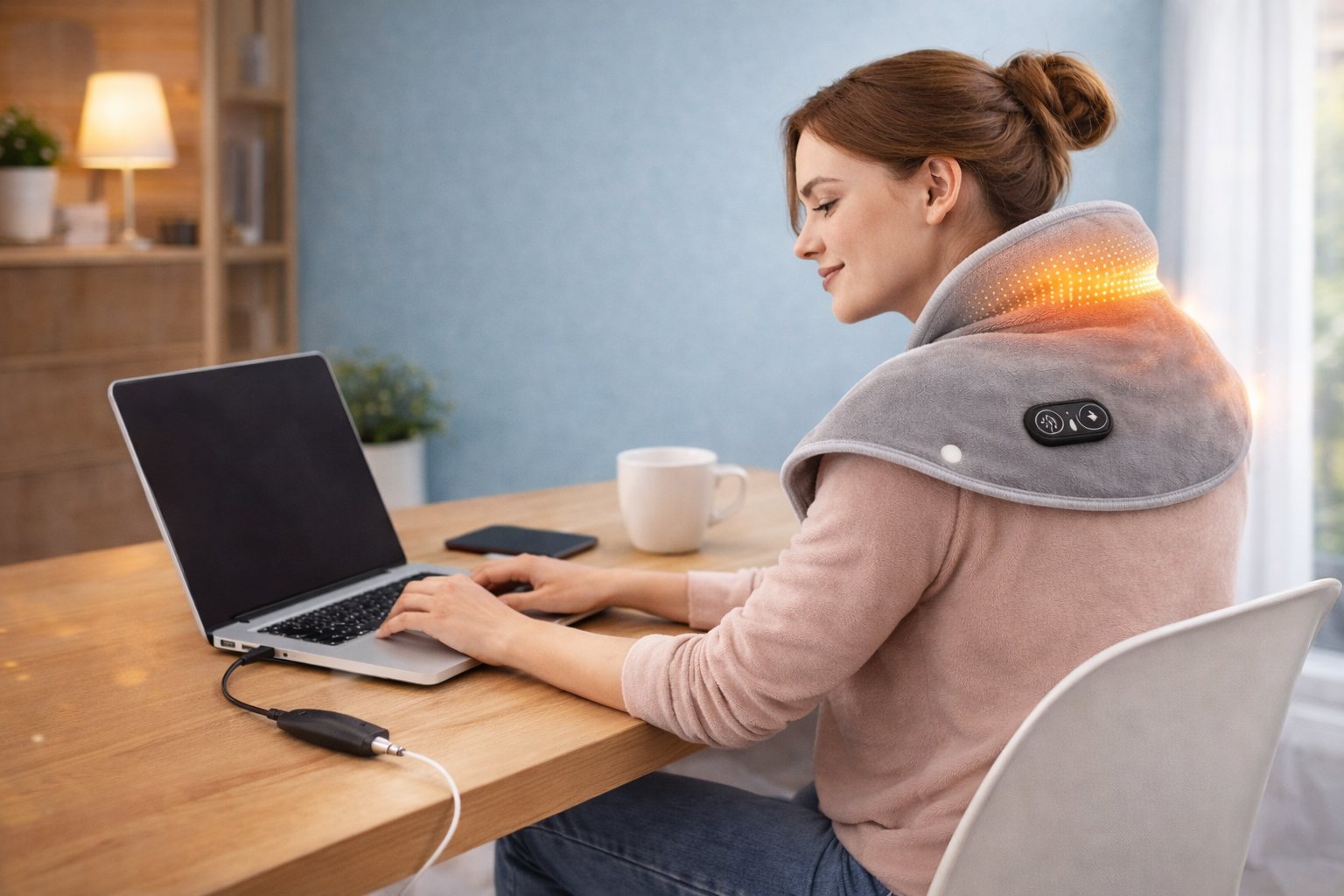 Conçu pour les longues journées devant un écran, notre coussin chauffant épouse parfaitement votre nuque pour réduire les tensions musculaires et améliorer votre confort au quotidien.